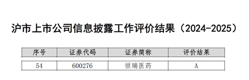 与此同时,在上海交易所公布的2024-2025年度沪市上市公司信息披露工作评价中,AG官网医药再次荣获最高评级——A级。